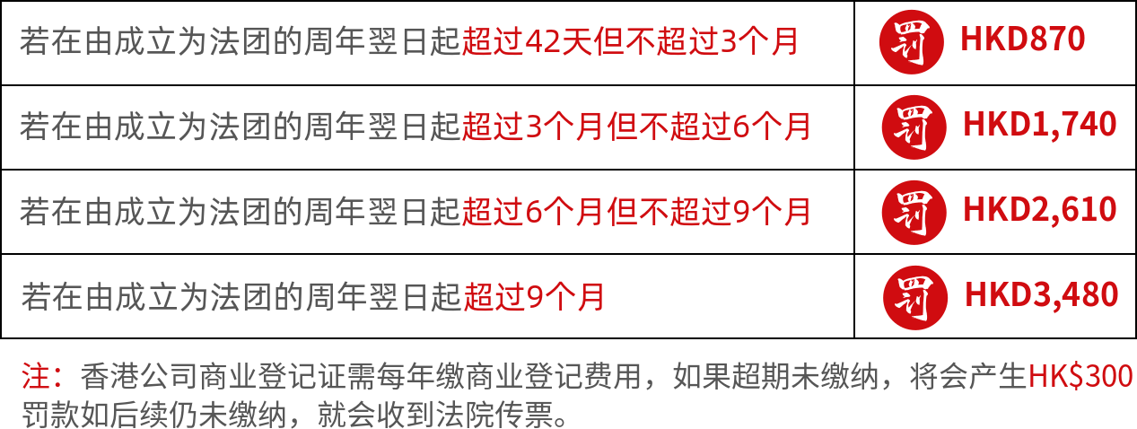 政府將會罰款或起訴,并發(fā)出法院傳票,逾期最高罰款HKD50000,每日罰款可達HKD700
